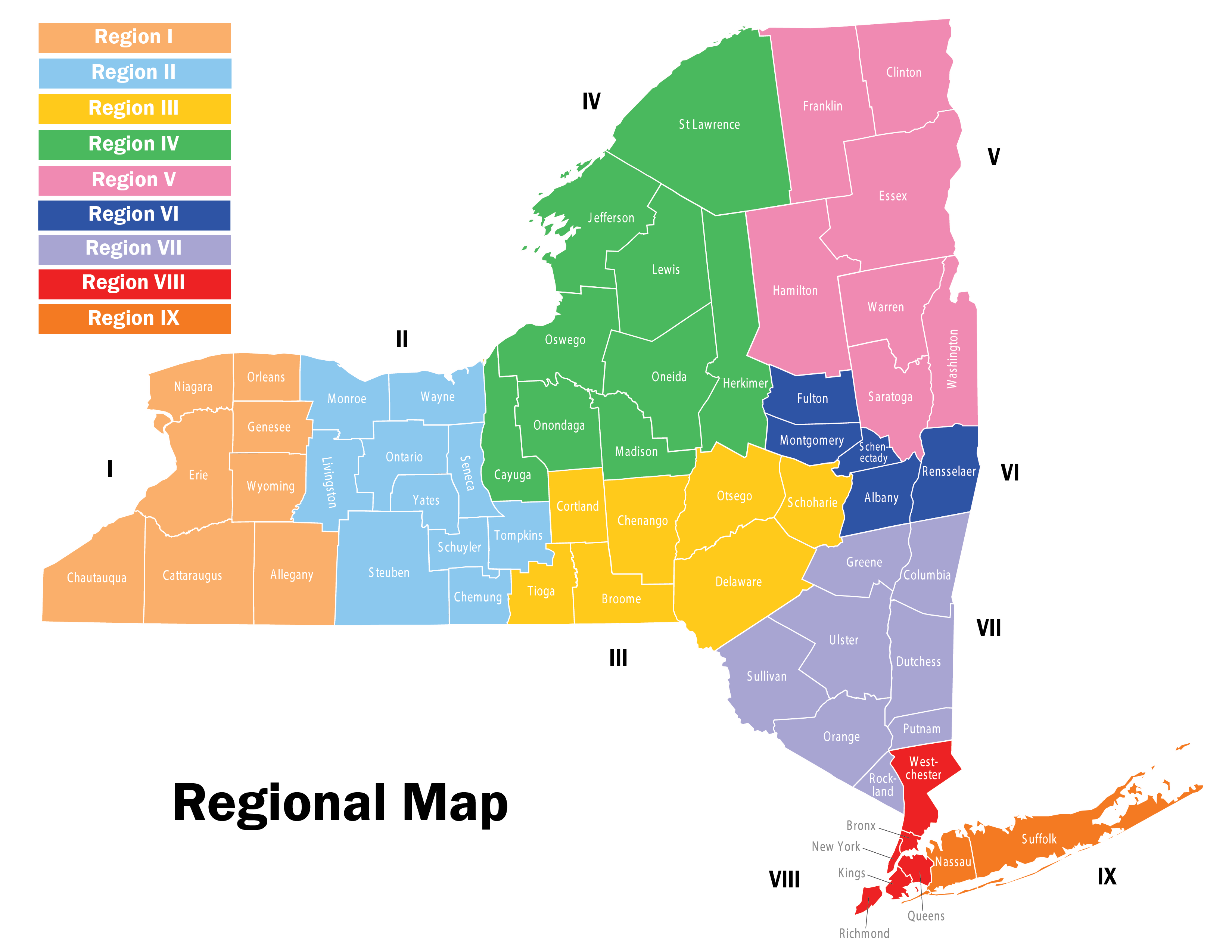 (Allegany, Cattaraugus, Chautauqua, Erie, Genesee, Niagara, Orleans, Wyoming) - Region II