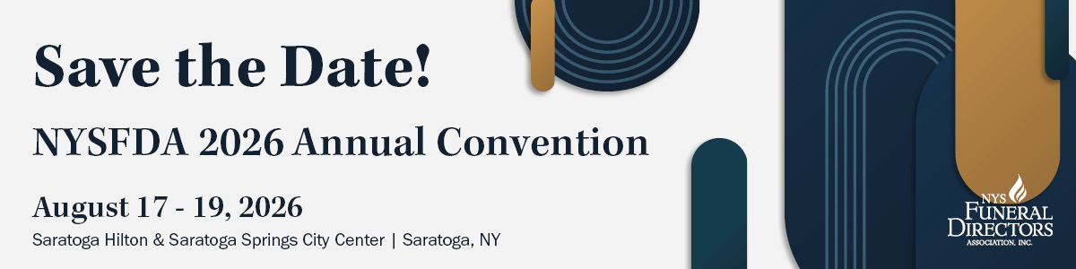 Mark your calendar for the Annual Convention August 17-19 in Saratoga Springs. Registration for NYSFDA members is free - just another benefit of membership. Each year our Convention offers an outstanding educational lineup offering 12 CEUs and featuring nationally-recognized leaders in funeral service as well as local experts in our industry. Plus the opportunity to navigate the trade show floor and chat with the vendors who continue to support our organization and its members. Stay tuned for the 2026 schedule and program details in May 2026.